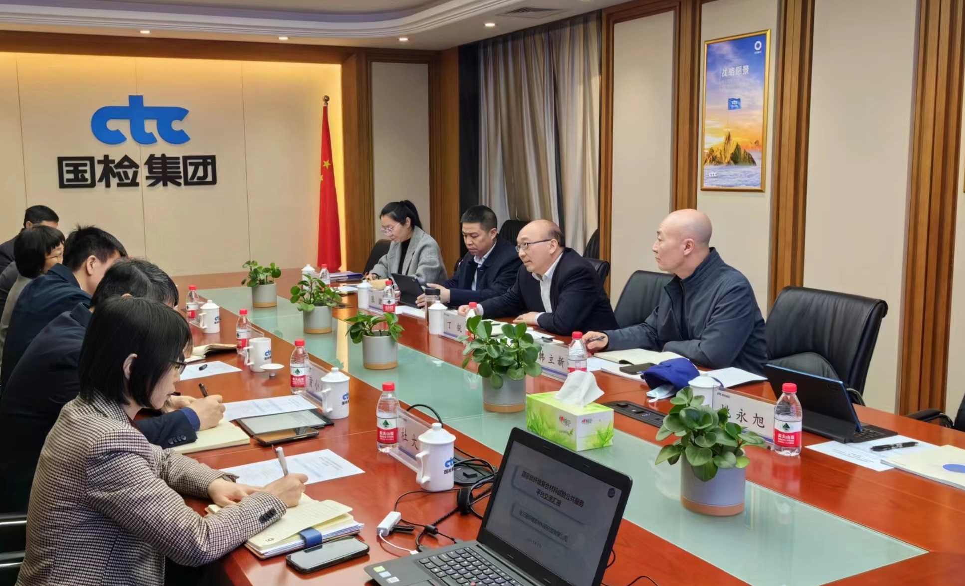國(guó)檢集團(tuán)黨委書記、總經(jīng)理朱連濱,黨委副書記陳璐對(duì)丁銳的到來(lái)表示歡迎。雙方分別介紹了國(guó)檢集團(tuán)、工投集團(tuán)、碳纖維復(fù)合材料試驗(yàn)平臺(tái)等基本情況,重點(diǎn)圍繞合作基礎(chǔ)、合作方向及合作模式進(jìn)行深入探討交流,在共建檢測(cè)分支機(jī)構(gòu)、共享實(shí)驗(yàn)室、共推研發(fā)項(xiàng)目及共擔(dān)檢測(cè)業(yè)務(wù)等方面達(dá)成共識(shí),下一步將繼續(xù)深化交流,推進(jìn)具體合作事項(xiàng)開展,加快實(shí)現(xiàn)資源融合、共同發(fā)展。