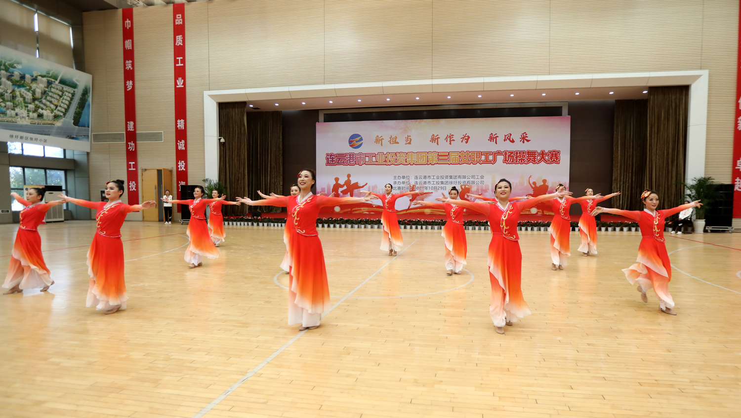 “新?lián)?、新作為、新風(fēng)采”,增進職工友誼,凝聚團隊力量。10月29日,由集團工會主辦,徐圩投資公司承辦的集團公司第三屆女職工廣場操舞大賽在徐圩新區(qū)體育館激情開賽,來自各單位的11支代表隊近150名女職工共同獻上一場精彩的文化盛宴。市婦聯(lián)副主席臧永明,集團公司黨委副書記戴鴻鳴、紀委書記汪群、工會主席劉承志等領(lǐng)導(dǎo)參加活動。