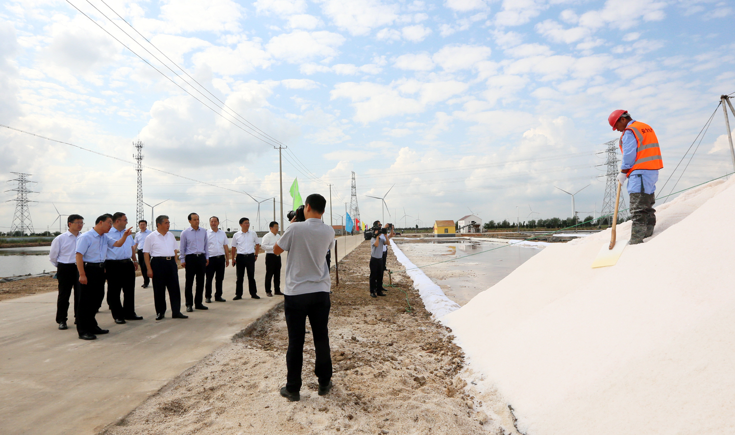 9月24日上午,市委書記項雪龍在日曬制鹽公司考察調(diào)研,看望慰問鹽業(yè)生產(chǎn)一線職工。市委常委、秘書長黃遠(yuǎn)征,副市長李振峰參加調(diào)研。集團(tuán)公司黨委書記、董事長楊龍,總經(jīng)理胡建明等陪同調(diào)研。