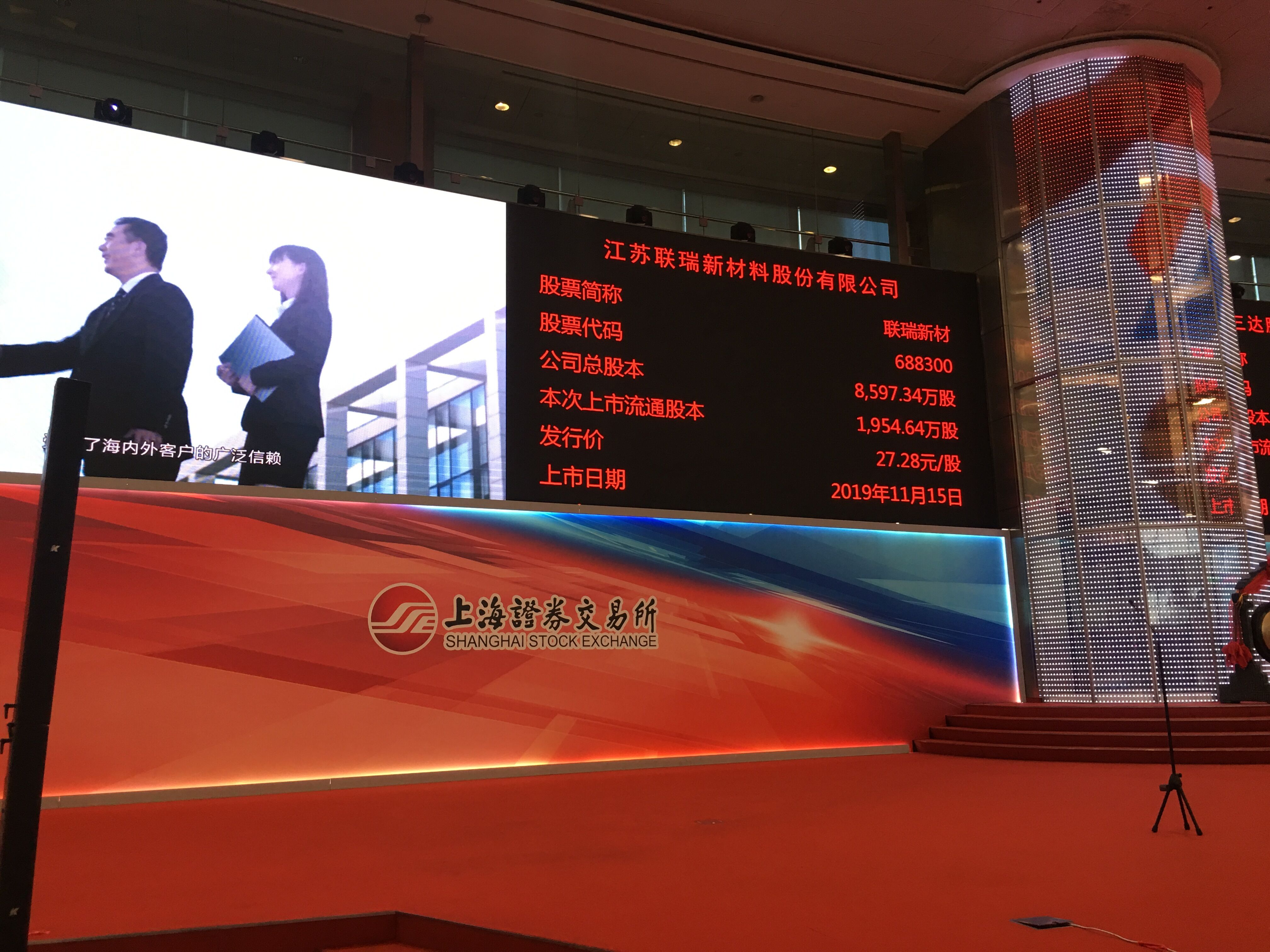 11月15日上午9時30分,工投集團產業(yè)基金投資企業(yè)——江蘇聯(lián)瑞新材料股份有限公司(以下簡稱“聯(lián)瑞新材料”)首次公開發(fā)行A股上市儀式于上海證券交易所舉行。集團公司黨委書記、董事長楊龍,資產管理公司有關人員受邀出席儀式。