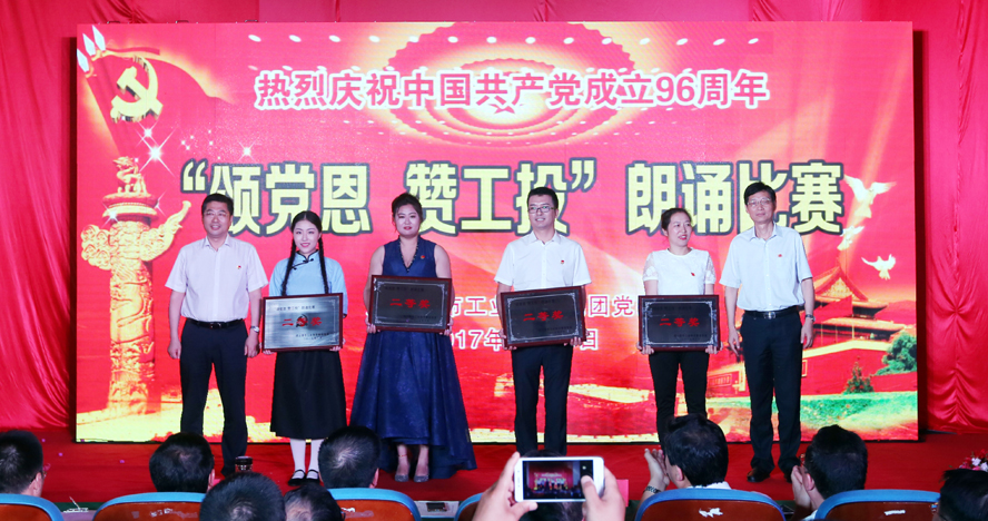 為慶祝中國(guó)共產(chǎn)黨成立96周年,緬懷黨的豐功偉績(jī),6月29日下午,集團(tuán)公司黨委在連云港職業(yè)技術(shù)學(xué)院文化藝術(shù)中心舉辦“頌黨恩·贊工投”朗誦比賽,集團(tuán)公司領(lǐng)導(dǎo)楊龍、胡建明、張其海、王士華、戴鴻鳴、汪群、匡友本、陳如軍與來(lái)自集團(tuán)公司各條戰(zhàn)線的近三百名代表歡聚一堂,共同慶祝黨的96歲華誕。