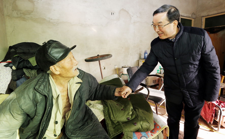 1月20日上午,集團(tuán)公司總經(jīng)理胡建明代表集團(tuán)黨委專門(mén)來(lái)到對(duì)口扶貧點(diǎn),贛榆區(qū)沙河鎮(zhèn)北朱果村走訪慰問(wèn)貧困戶。在沙河鎮(zhèn)人大主席曹軍華的陪同下,胡建明共看望了十戶貧困戶,每到一家,都關(guān)切地詢問(wèn)他們生產(chǎn)生活狀況和遇到的困難,勉勵(lì)他們堅(jiān)定信心,樹(shù)立戰(zhàn)勝困難的勇氣,并為他們送去慰問(wèn)金和節(jié)日的祝福。