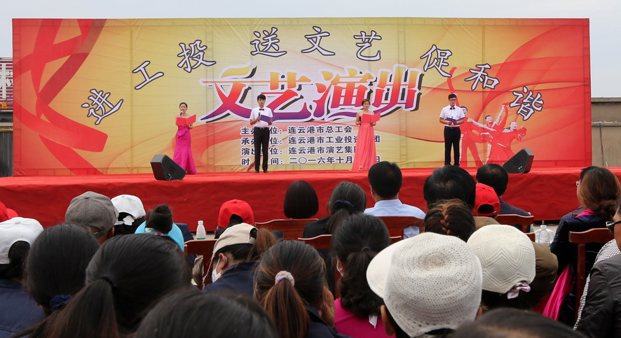 10月11日下午,由連云港市總工會(huì)主辦、集團(tuán)公司承辦、市演藝集團(tuán)演出的“進(jìn)工投、送文藝、促和諧”文藝演出在灌西投資公司精彩上演,市總工會(huì)副主席陳健、集團(tuán)公司工會(huì)主席戴鴻鳴等領(lǐng)導(dǎo),以及1000余名觀眾觀看了演出。