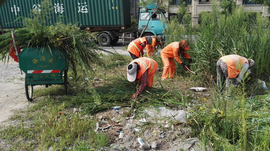 在昌圩湖環(huán)湖路南側(cè)一處公共廁所處,裕升養(yǎng)護(hù)公司20多名環(huán)衛(wèi)保潔工人正在清理公廁周邊的雜草、建筑垃圾,有的在割草、有的在搬磚、有的在推車,一個(gè)個(gè)汗流浹背,忙得不亦樂乎。正在現(xiàn)場忙碌的保潔大隊(duì)長劉保軍對筆者說:“這一塊段還沒有交給我們養(yǎng)護(hù),一直無人管理,雜草叢生,成為建筑、裝修垃圾的堆放地,根據(jù)開發(fā)區(qū)創(chuàng)衛(wèi)環(huán)境衛(wèi)生無死角要求和華茂公司生產(chǎn)技術(shù)部門指令,我們裕升養(yǎng)護(hù)公司承擔(dān)這一區(qū)域環(huán)境衛(wèi)生突擊整治任務(wù),從綠化保潔班組抽調(diào)20多人來搞突擊,大家面對天氣炎熱、工作量大、清理困難等因素,發(fā)揚(yáng)不怕吃苦、敢打硬仗的華茂精神,奮戰(zhàn)在突擊現(xiàn)場,每個(gè)人都汗流不止,工作服全被汗水浸透,昨天我們已在這里整整干了一天,由于垃圾量大、雜草面積大,我們動用了裝載機(jī)等機(jī)械設(shè)備,運(yùn)雜草的三輪車跑近百趟,清理建筑、裝修等垃圾數(shù)十噸。估計(jì)今天下午能夠全部結(jié)束?!?/span>