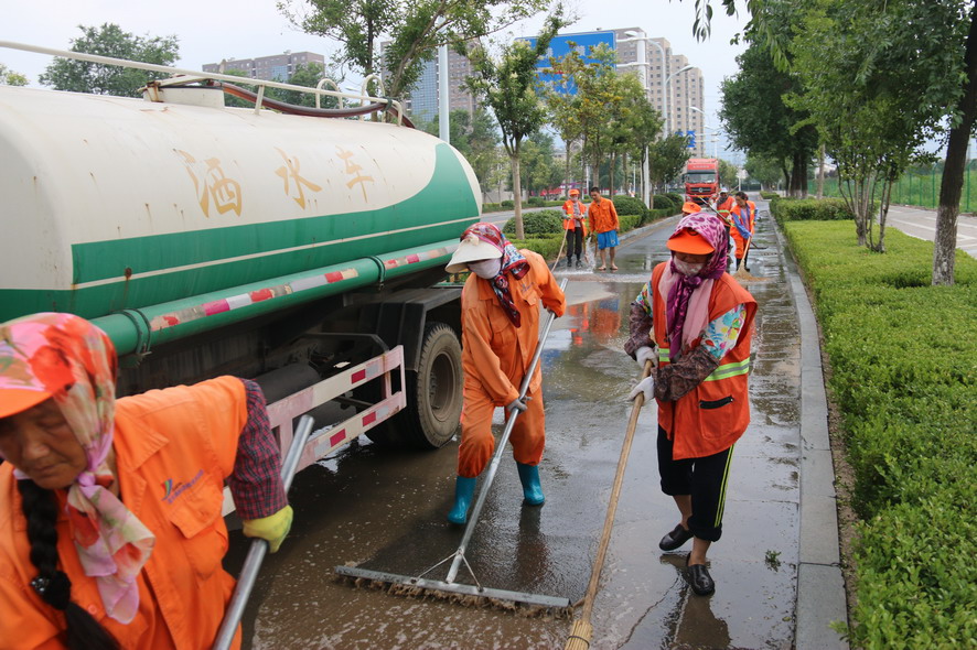 8月19日在火車站廣場及周邊路段,40多名綠化、保潔工人及灑水車、清掃車等全力保障火車站重點(diǎn)地段的環(huán)境衛(wèi)生,為過往旅客提供一個(gè)干凈整潔舒心的出行環(huán)境。據(jù)現(xiàn)場負(fù)責(zé)人龔本國介紹,隨著創(chuàng)衛(wèi)工作力度的進(jìn)一步加大,開發(fā)區(qū)對我們火車站廣場及周邊路段的環(huán)境衛(wèi)生提出了更高的要求,我們對會泉路商戶門前的綠化進(jìn)行了補(bǔ)植,種植紅葉石楠等苗木600多平方,每天專門安排一輛灑水車對火車站廣場及周邊路段進(jìn)行巡回清洗清掃,確保路面干凈無塵土,對廣場站臺、護(hù)欄、果皮箱、路燈桿、花壇進(jìn)行清理擦洗,對下水道進(jìn)行清掏,蓋板更換維修。為確保創(chuàng)衛(wèi)工作任務(wù)高標(biāo)準(zhǔn)高質(zhì)量完成,連日來,綠化養(yǎng)護(hù)、環(huán)衛(wèi)保潔工人天天早上6點(diǎn)上班,到晚上10點(diǎn)下班,中午吃飯休息只有一個(gè)小時(shí),每天工作10多個(gè)小時(shí),為創(chuàng)衛(wèi)工作做了很多實(shí)實(shí)在在的事情,他們真的很不易,很辛苦,只因有了他們的辛勤勞動、無私奉獻(xiàn),城市環(huán)境衛(wèi)生才會越來越好。