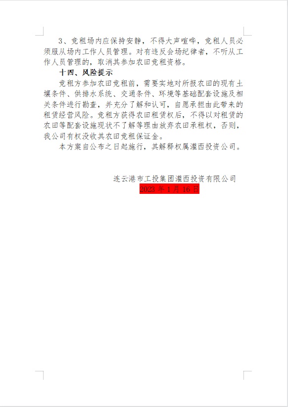 2023年灌西投資公司農(nóng)田公開競租公告