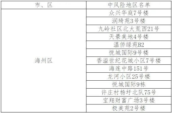 根據(jù)國務(wù)院聯(lián)防聯(lián)控機制有關(guān)規(guī)定,經(jīng)綜合評估研判,市指揮部決定,自發(fā)布之日起,將龍河小區(qū)25號樓、悅城國際9棟、許莊村楊圩北隊75號、寶翔財富廣場3號樓、極美苑2號樓調(diào)整為中風(fēng)險地區(qū)。