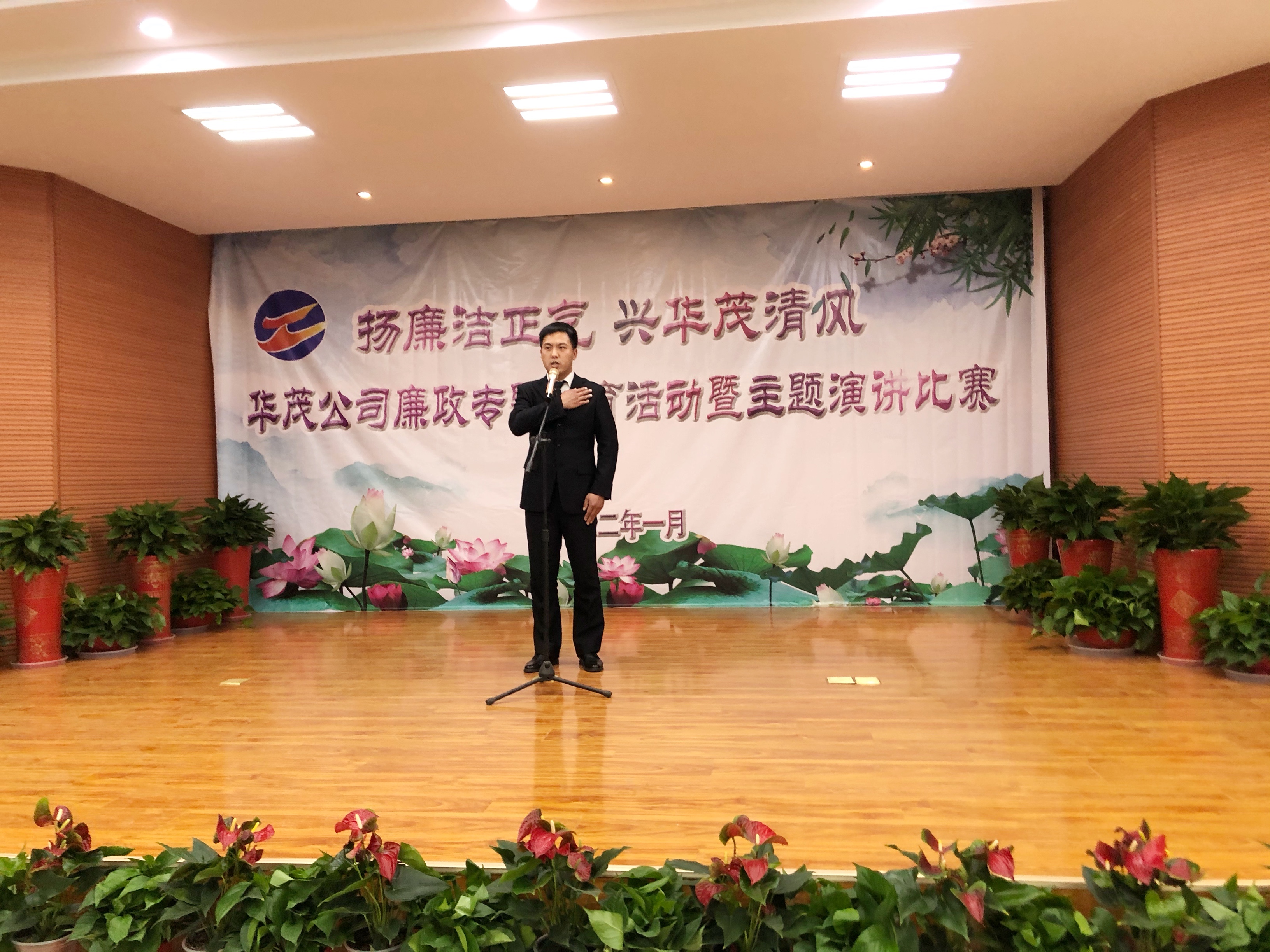 此次演講比賽也是華茂公司節(jié)前廉政教育專項(xiàng)活動(dòng)之一,比賽前,還組織黨員干部觀看了警示教育片《遠(yuǎn)離家庭腐敗》。(陳炳辰)