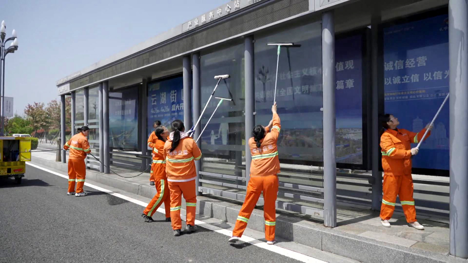龔飛作為女子班班長,她不僅要管理好徐圩新區(qū)核心區(qū)域50萬平方米道路保潔和8個站臺清洗、施工路段的垃圾清撿“規(guī)定動作”,同時還要完成保潔面積40000平方米“自選動作”。
