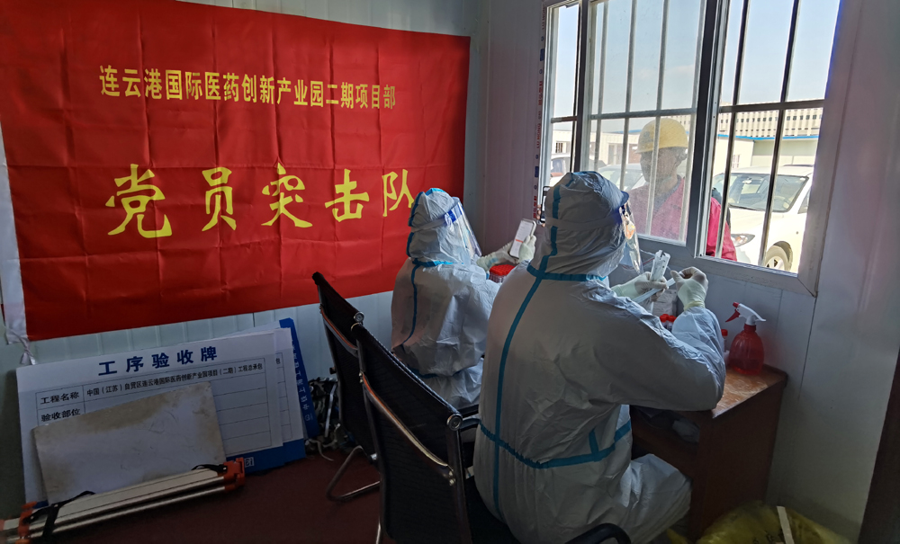 “請大家保持一米線,戴好口罩,有序參與核酸檢測,謝謝配合!”來自市級重大項目連云港國際醫(yī)藥創(chuàng)新產(chǎn)業(yè)園二期項目黨員突擊隊的成員席時棟、陳家輝喊道。據(jù)悉,該項目目前按照上級相關規(guī)定,實行閉環(huán)管理,做好相關疫情防控工作?!拔覀冺椖坎繃栏癜凑帐?、開發(fā)區(qū)相關規(guī)定,做好閉環(huán)施工,疫情防控、項目建設兩手抓、兩手硬?!眮碜约瘓F棚戶區(qū)改造裕源三期項目負責人青年黨員徐震說道。