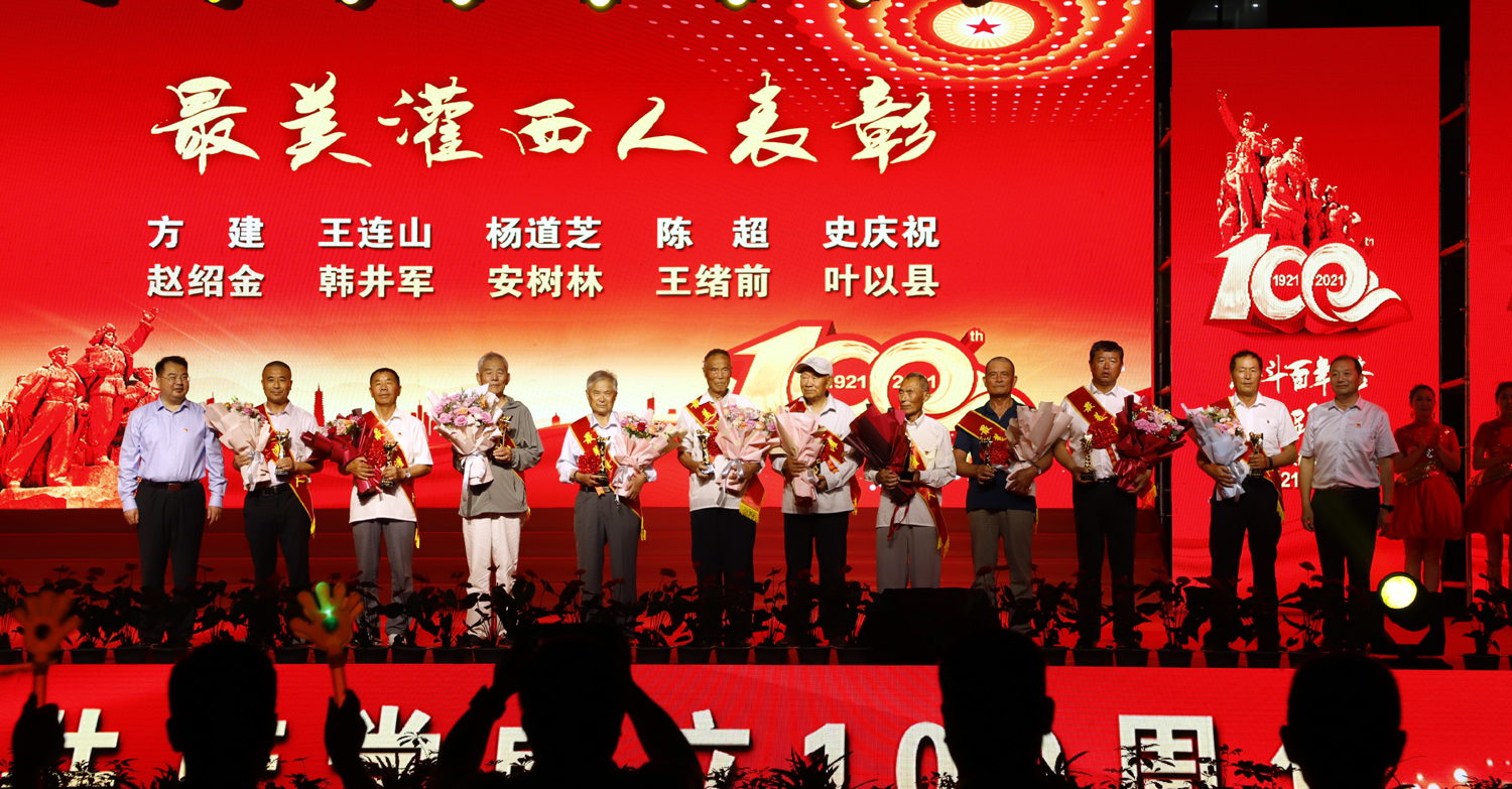演出期間,對(duì)評(píng)選出的“最美灌西人”、10名優(yōu)秀員工和優(yōu)秀黨務(wù)工作者代表進(jìn)行了表彰。