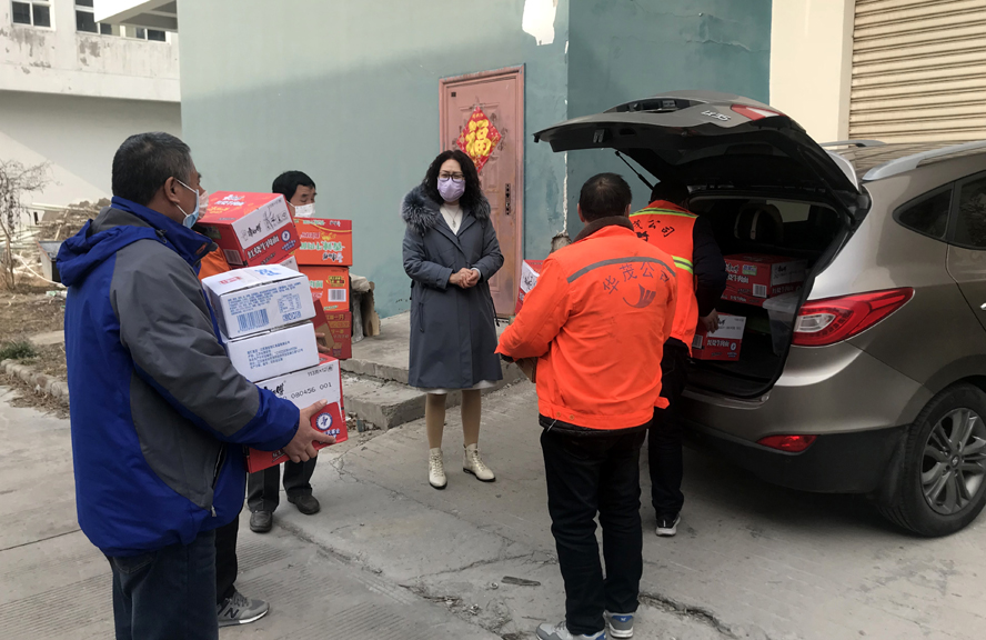大年初四,在瑞泰服務(wù)公司現(xiàn)場,車隊(duì)的駕駛員們正在從車上搬下一箱箱快餐面、火腿腸等食品。車隊(duì)隊(duì)長汪永勤說:“為應(yīng)對疫情防控,大家響應(yīng)公司的號召,車隊(duì)10多名駕駛員春節(jié)沒有放假全部堅(jiān)守崗位,每天加大清掃車、灑水車作業(yè)頻次、作業(yè)時間,保障園區(qū)道路環(huán)境衛(wèi)生,助力戰(zhàn)“疫”,但是食堂不能開火,部分職工離家遠(yuǎn),中午吃飯就成了問題。這不,公司工會一早就把這些食品送來,幫我們解決了問題。”