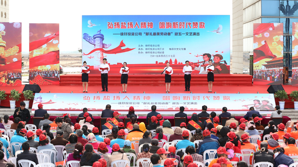 徐圩投資公司舉辦“獻(xiàn)禮最美勞動者”文藝演出,并舉行首屆“星級員工”和“最美職工家庭”獲得者頒獎儀式。