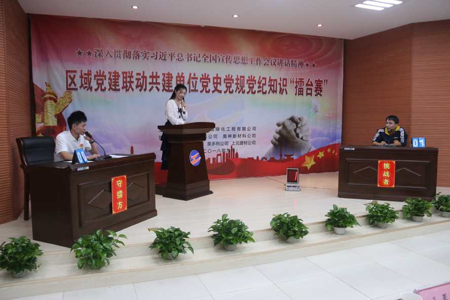春華秋實,枝繁葉茂。在這美好的金秋時節(jié),集團公司大浦片區(qū)區(qū)域黨建聯(lián)動共建單位黨史黨規(guī)黨紀知識“擂臺賽”于9月30日下午在華茂綠化工程公司順利進行,來自華茂、神特新材料、奧神新材料、海洲灣、美多利、上元建材等6家單位22名選手參加比賽。經(jīng)過近2個小時、23輪的激烈角逐,華茂公司的14號選手楊方?jīng)_出重圍,奪得冠軍。