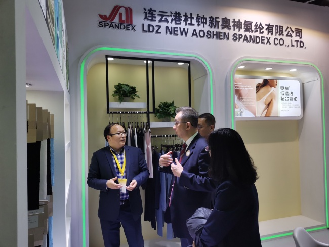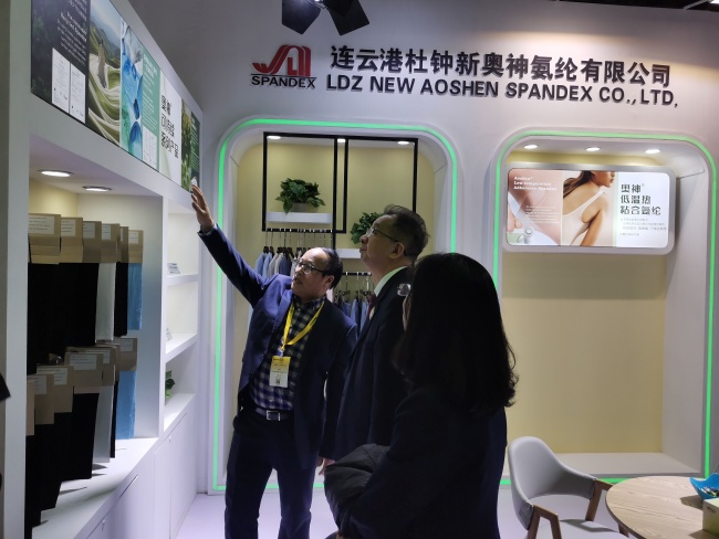 3月6日,連云港杜鐘新奧神氨綸有限公司應(yīng)邀參加2024中國國際紡織紗線(春夏)展覽會。公司攜三款低碳環(huán)保新產(chǎn)品閃亮登場,與本次紗線展“綠色、循環(huán)、低碳”的理念完美契合。工信部消費(fèi)品工業(yè)司司長何亞瓊一行親臨公司展位指導(dǎo)交流,中國化學(xué)纖維工業(yè)協(xié)會副秘書長靳高嶺等領(lǐng)導(dǎo)陪同。