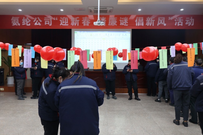 2月7日,新春佳節(jié)來臨之際,杜鐘氨綸公司紀委組織“迎新春 猜廉謎 倡新風”活動。職工歡聚一堂,通過謎語與廉潔相結合的形式共同迎接龍年。
