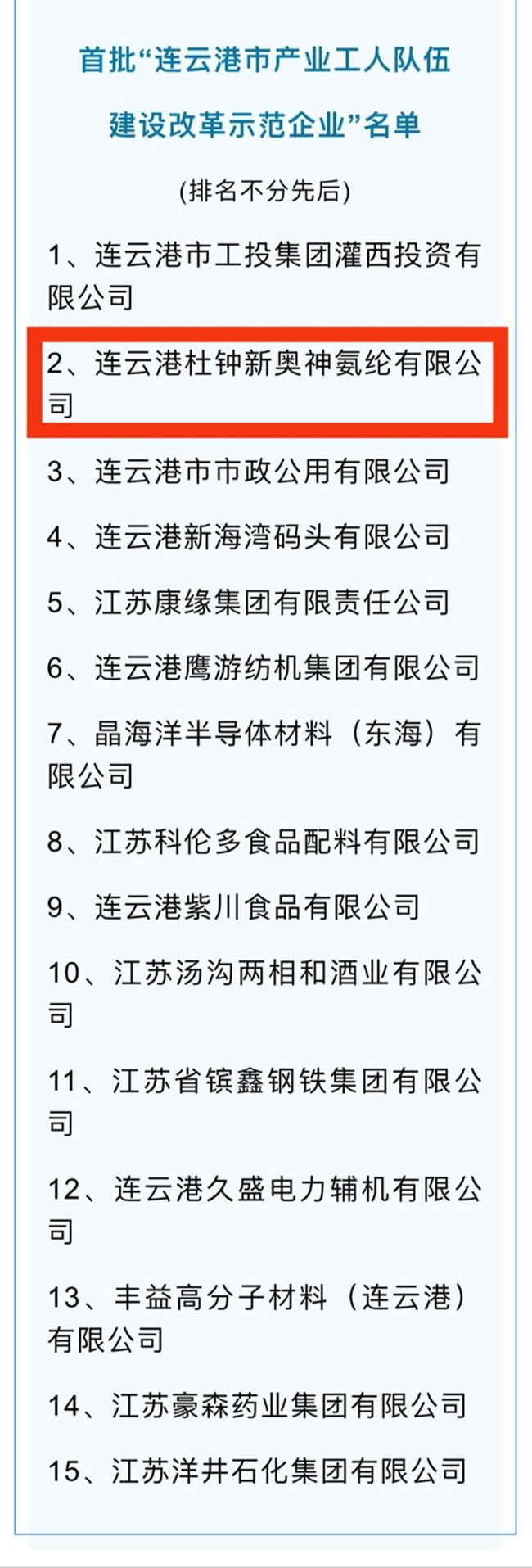 近日,連云港市總工會(huì)公布了首批連云港市產(chǎn)業(yè)工人隊(duì)伍建設(shè)改革示范企業(yè)名單,氨綸公司成功入選。