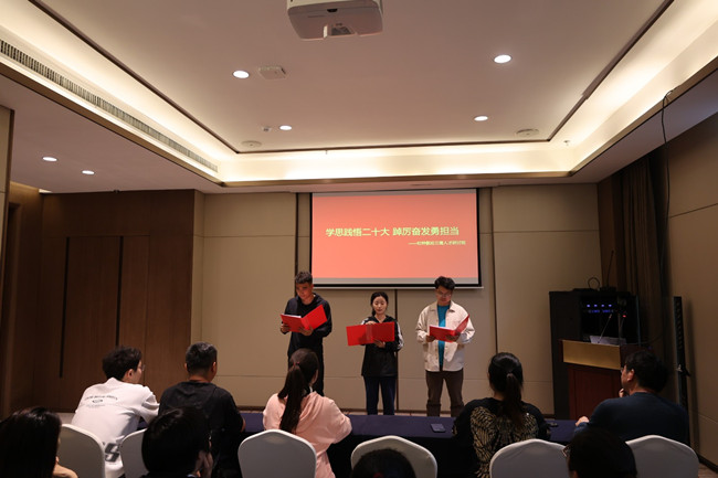 活動中,組織開展了以“學思踐悟二十大,踔厲奮發(fā)勇?lián)敗睘橹黝}的學習研討活動,安排黨務(wù)干部領(lǐng)學黨的二十大報告,年輕干部誦讀“黨的二十大金句”,紀檢、財務(wù)、技術(shù)、企管部門代表結(jié)合本職工作讀原文分享交流感悟等系列活動,最后一起觀看了小品《坑》。