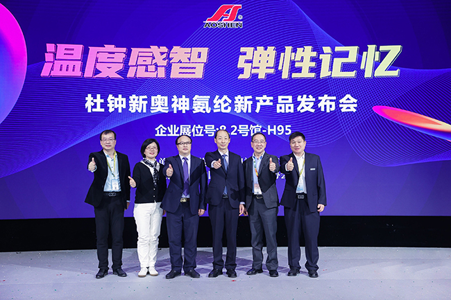 3月29日,連云港杜鐘新奧神氨綸有限公司“溫度感智,彈性記憶——杜鐘新奧神氨綸新產(chǎn)品發(fā)布會在國家會展中心(上海)精彩呈現(xiàn)。中國化學(xué)纖維工業(yè)協(xié)會會長陳新偉、中國化學(xué)纖維工業(yè)協(xié)會總經(jīng)濟(jì)師、氨綸分會常務(wù)副會長李增俊、江南大學(xué)教育部針織技術(shù)工程研究中心副教授萬愛蘭蒞臨現(xiàn)場,來自產(chǎn)業(yè)鏈的知名面料、服裝企業(yè)200余人參加了本次發(fā)布會,一起分享奧神創(chuàng)新研發(fā)成果,探索氨綸應(yīng)用新方向。