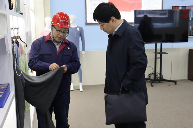 呂處長(zhǎng)對(duì)我公司低溫?zé)嵴澈习本]、抗菌氨綸、驅(qū)蚊氨綸及生產(chǎn)全流程自動(dòng)化、智能化生產(chǎn)線等給予了高度評(píng)價(jià),希望公司乘風(fēng)破浪,進(jìn)一步深入實(shí)施差別化戰(zhàn)略、后道特色產(chǎn)品發(fā)展戰(zhàn)略,再創(chuàng)針織行業(yè)輝煌。