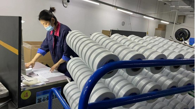 品保部全體員工積極配合公司疫情防控要求,挑選精兵強將駐廠保生產(chǎn)。從11月20日起,八期外檢開始包裝萊卡產(chǎn)品,外檢員嚴格按照萊卡的高標準高要求進行產(chǎn)品包裝,仔細確認每卷絲的各項外觀指標,認真核對絲卷內(nèi)標簽以及絲卷的數(shù)量,填寫相關(guān)報表,做到每個絲卷均可追溯。班長及統(tǒng)計員負責現(xiàn)場協(xié)調(diào)工作,指導打包人員按要求封箱、碼垛,做好內(nèi)外標簽打印、數(shù)據(jù)整理分析工作。面對嚴格的包裝要求,八期萊卡包裝團隊為保質(zhì)保量的完成包裝任務。連續(xù)幾天加班至凌晨,堅守崗位、毫無怨言。