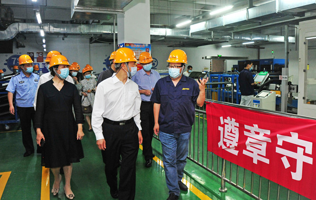 一行人先后參觀了公司展廳、黨員活動(dòng)室、八期生產(chǎn)線、自動(dòng)化包裝線等。參觀過程中,公司總經(jīng)理張斌對(duì)杜鐘氨綸公司的發(fā)展歷程,差別化產(chǎn)品、戰(zhàn)略優(yōu)勢(shì)、積極開拓營(yíng)銷渠道,創(chuàng)新運(yùn)用新媒體傳播方式推進(jìn)商品銷售等進(jìn)行了詳細(xì)介紹。副市長(zhǎng)陳紅淦對(duì)氨綸公司低溫?zé)嵴澈习本]、抗菌氨綸、驅(qū)蚊氨綸給予了高度評(píng)價(jià)。希望公司進(jìn)一步深入實(shí)施差別化氨綸及后道特色產(chǎn)品發(fā)展戰(zhàn)略的重大舉措,乘風(fēng)破浪,再創(chuàng)行業(yè)輝煌。