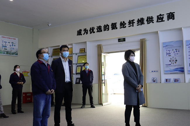 達晴一行人先后參觀了公司展廳、黨員活動室、八期生產(chǎn)線、自動化包裝線等。參觀過程中,講解員對氨綸公司的發(fā)展歷程,差別化產(chǎn)品、戰(zhàn)略優(yōu)勢、等進行了詳細介紹。達晴副行長對氨綸公司低溫熱粘合氨綸、抗菌氨綸、驅蚊氨綸及氨綸生產(chǎn)全流程自動化、智能化生產(chǎn)線等給予了高度評價。希望氨綸公司進一步深入實施差別化氨綸及后道特色產(chǎn)品發(fā)展戰(zhàn)略的重大舉措,乘風破浪,再創(chuàng)行業(yè)輝煌。
