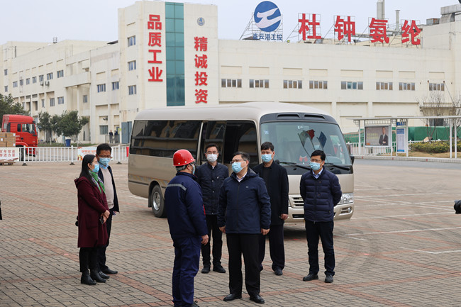 3月15日上午,市委常委、區(qū)黨工委書記商振江一行來氨綸公司檢查疫情防控和安全生產(chǎn)工作,總經(jīng)理張斌陪同調研。