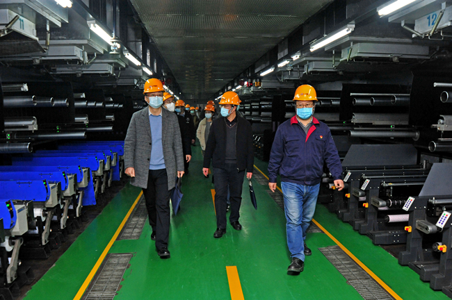 安處長一行參觀了展廳、八期生產(chǎn)線、自動(dòng)包裝線。在隨后的交流座談會(huì)上,張斌總經(jīng)理詳細(xì)地介紹了杜鐘氨綸的發(fā)展歷程及近年來的生產(chǎn)運(yùn)營情況。胡傳法書記具體匯報(bào)了氨綸黨建工作的開展情況,著重介紹了三組聯(lián)建的實(shí)施背景、重要意義、取得成效。工信局調(diào)研組向我司宣講了有關(guān)政策,并對我司的數(shù)字化項(xiàng)目提出建議。