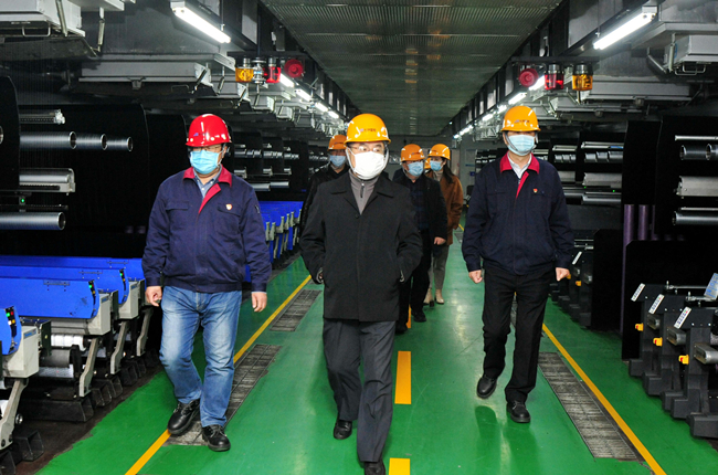 丁維杰一行參觀了展廳、八期生產(chǎn)線、自動包裝線。張斌總經(jīng)理詳細地介紹了杜鐘氨綸的發(fā)展歷程,公司近年來研發(fā)的功能性氨綸的主要特點以及后道產(chǎn)品的開發(fā)與銷售。在隨后的座談會上,又重點匯報了公司近年來“三鷹”計劃人才培養(yǎng)方面取得的良好成效。胡書記具體匯報了公司深化落實產(chǎn)改工作的一些舉措。劉主席介紹了集團層面上產(chǎn)改工作情況,他指出氨綸公司作為首批產(chǎn)改試點企業(yè),結(jié)合企業(yè)實際,不斷總結(jié)探索,創(chuàng)造很多可借鑒可復制可推廣的經(jīng)驗制度,發(fā)揮產(chǎn)業(yè)工人隊伍建設改革的示范引領作用。