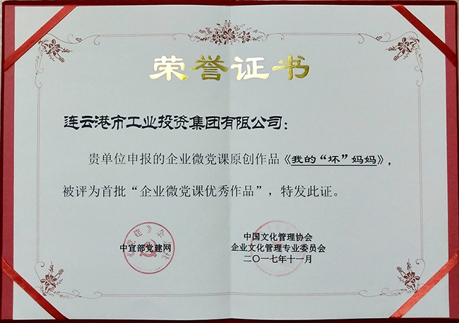 日前,在杭州舉辦的“2017中國(guó)文化管理協(xié)會(huì)企業(yè)文化管理年會(huì)暨企業(yè)文化學(xué)習(xí)實(shí)踐分享會(huì)”上,集團(tuán)公司拍攝的微電影《我的“壞媽媽”》被中共中央宣傳部黨建網(wǎng)等機(jī)構(gòu)評(píng)為首批“企業(yè)微黨課”優(yōu)秀作品和第四屆“最美企業(yè)之聲”之《最美先鋒之聲》金獎(jiǎng)代言作品。連云港市華茂綠化工程有限公司還被予“企業(yè)黨建文化十強(qiáng)單位”榮譽(yù)稱號(hào)。