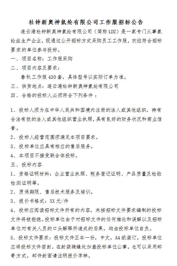 工作服招標(biāo)公告(2021-2)