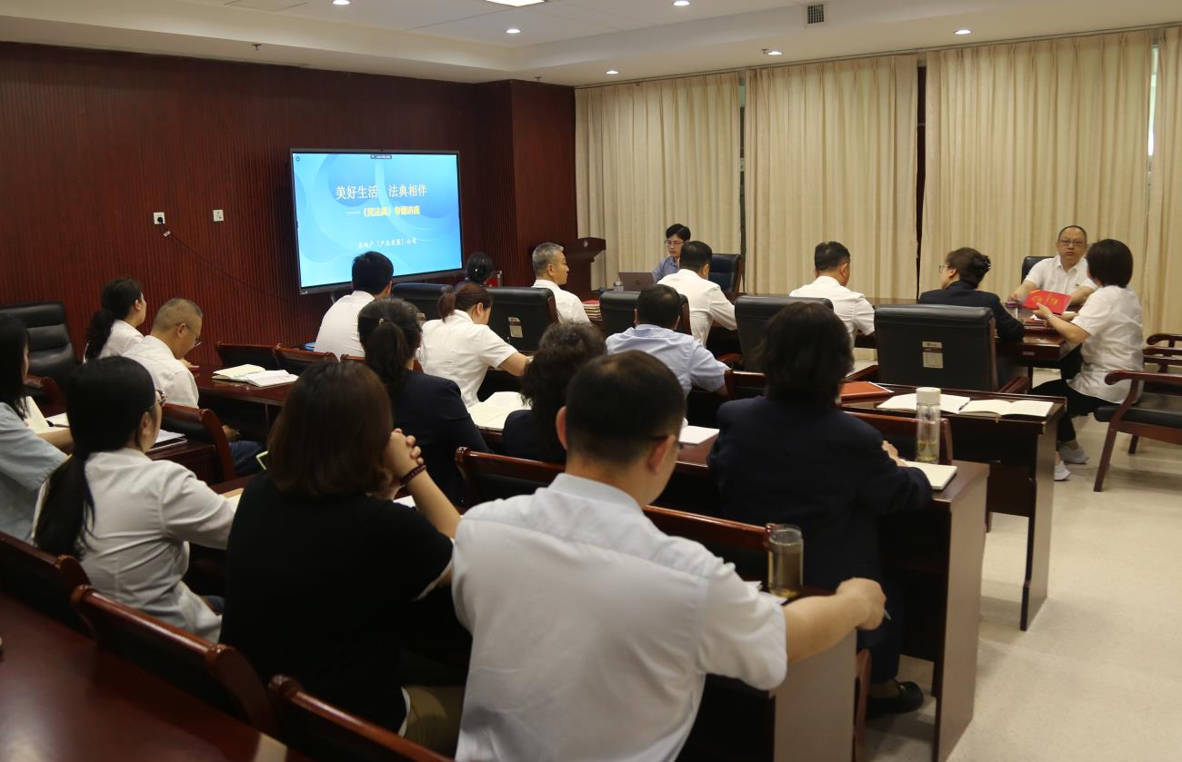 為進一步民法典學習宣傳教育走深走實,引領(lǐng)企業(yè)依法合規(guī)經(jīng)營,提升企業(yè)員工法治意識和法治理念,5月24日,公司邀請江蘇田灣律師事務(wù)所朱峻鋒律師進行專題講座,圍繞民法典的重要性、基本概況和基本原則、部分法條的理解與運用來展開。公司領(lǐng)導班子成員、廣大職工30余人參加本次活動。