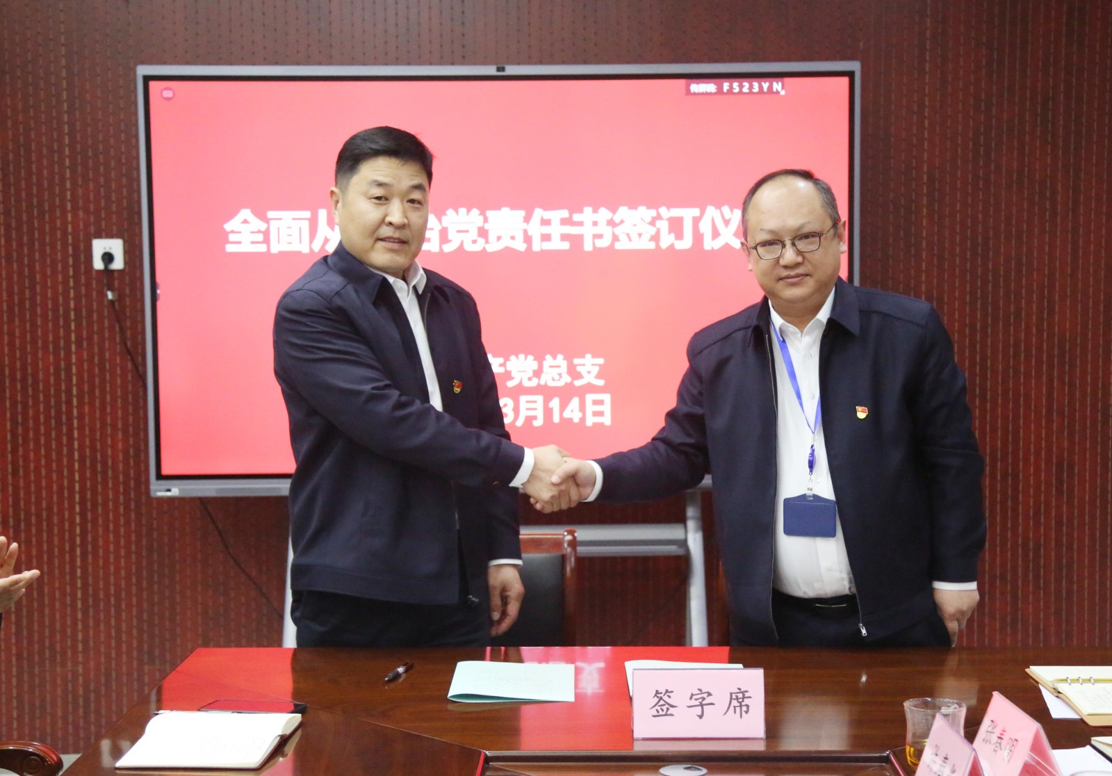 會(huì)上,與會(huì)人員觀看了廉政警示教育片,各黨支部簽訂了《全面從嚴(yán)治黨責(zé)任書(shū)》。