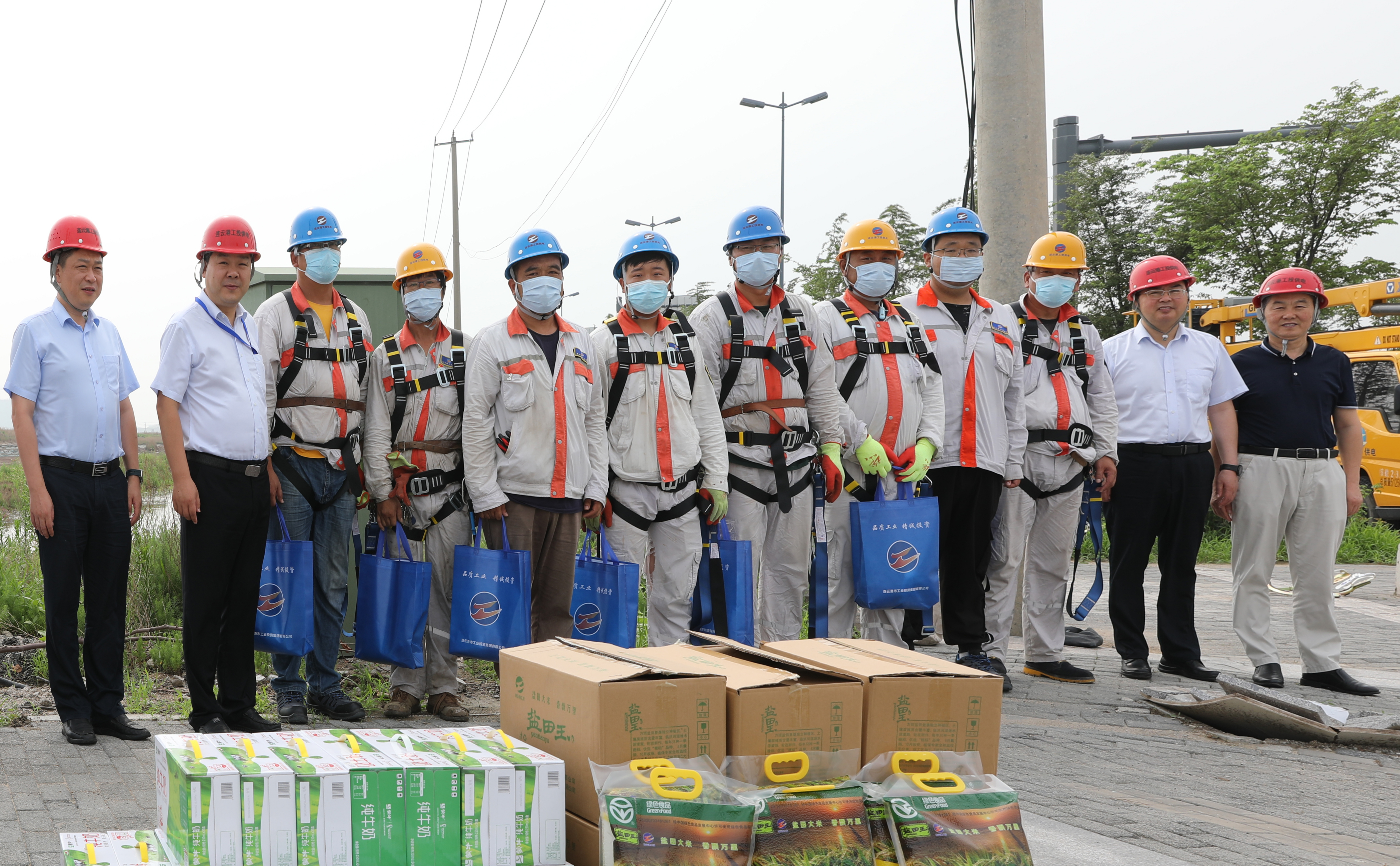在臺北供電所工地現(xiàn)場,集團公司黨委副書記、工會主席戴鴻鳴對烈日下工作的職工給予了高度贊揚,并將慰問品送到職工的手中,將關(guān)愛送到大家的心坎上,并叮囑大家在做好疫情防控工作的同時做好防暑降溫工作,合理安排休息,注意勞逸結(jié)合,確保各項工作的正常運行。