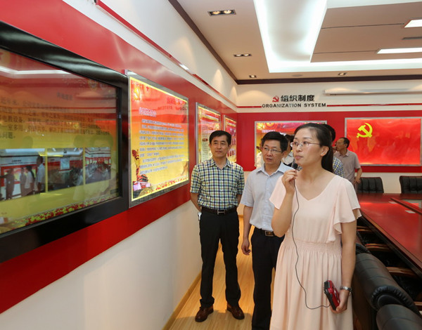 6月9日,市委新社工委召開黨建工作觀摩匯報(bào)會(huì),市委組織部副部長、市委黨建辦主任陳軍帶領(lǐng)觀摩團(tuán),在集團(tuán)公司領(lǐng)導(dǎo)鄭宜虎的陪同下,到我公司黨建活動(dòng)室觀摩。