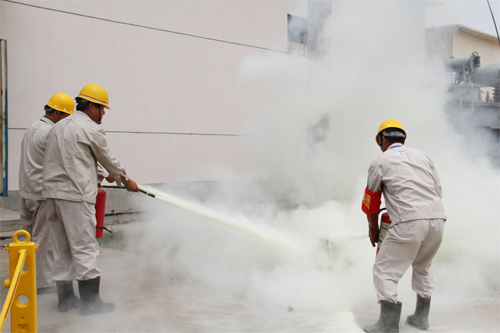 演練假設(shè)灌西變電所35千伏在用1號主變在運行過程中突然起火,火勢危及變電所的安全運行,情況十分危急?;馂?zāi)發(fā)生后,變電所值班人員立即向所領(lǐng)導(dǎo)報告,按指示啟動滅火應(yīng)急預(yù)案。滅火過程中,共動用4支滅火器從不同角度對火勢進行壓制。經(jīng)過半個小時的協(xié)同作戰(zhàn),值班人員準確、快捷、安全地完成了滅火演習過程,演練取得圓滿成功。