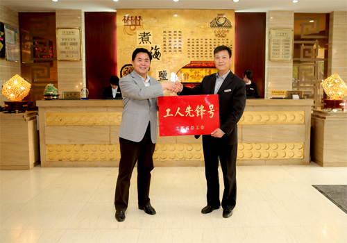 五一前夕,集團(tuán)公司董事長、黨委書記顧永庚向榮獲2014年度江蘇省“工人先鋒號”榮譽稱號的公司淮鹽大酒店授牌。顧董事長勉勵淮鹽大酒店全體員工繼續(xù)發(fā)揚這種爭創(chuàng)一流的巨大熱情和無窮智慧,珍惜榮譽再創(chuàng)佳績,繼續(xù)擔(dān)當(dāng)服務(wù)行業(yè)的領(lǐng)跑者。這是淮鹽大酒店獲得2013年連云港市“工人先鋒號”和2012年連云港市“五一巾幗標(biāo)兵崗”后又一榮譽。