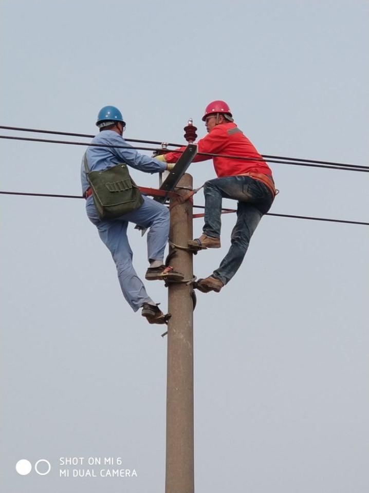 5月2日,張圩新農(nóng)村小區(qū)配電安裝工程施工現(xiàn)場(chǎng),一根15米的電線(xiàn)桿上,榮獲集團(tuán)“技能大師”稱(chēng)號(hào)的王建采用實(shí)踐教學(xué)的方法,親自為新員工祁明智做登桿、金具安裝、導(dǎo)線(xiàn)捆綁等示范操作,促其盡快掌握技術(shù)要領(lǐng)。