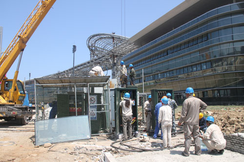 該所在承攬此項工程后,克服施工時間緊、現場地形復雜、交叉作業(yè)多等困難,精心策劃、周密部署,嚴格按照工程施工預案,在演藝廣場和美食街地段新增一條10千伏電源,改造兩處10千伏電源進口,敷設5公里10千伏高壓電纜,設置11臺電源分支箱、3臺路燈廂變,安裝5臺400千伏安變壓器,最終形成了一個主供、兩個備用的供電輸送網格局。