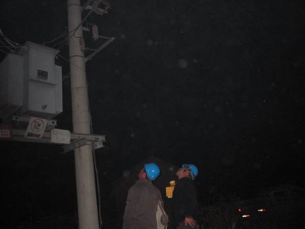 近日,青口供電所為防止配變?cè)O(shè)備被盜,加強(qiáng)對(duì)偏遠(yuǎn)地區(qū)設(shè)備的檢查。圖為職工夜間進(jìn)行巡視。(宋忠文)
