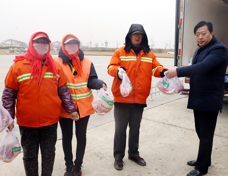 市總工會一行首先向身著環(huán)衛(wèi)工馬甲排成整齊隊伍的40余名南翼一線環(huán)衛(wèi)工人送上市總工會冬日里的問候。隨后,為南翼一線環(huán)衛(wèi)工人發(fā)放了豬肉等慰問品,讓堅守在一線的環(huán)衛(wèi)工人感受到市總工會的溫暖和關(guān)懷。