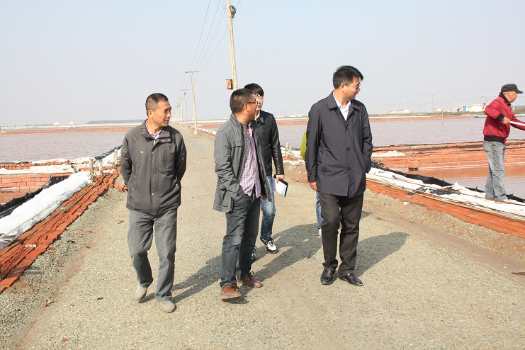 10月27日上午,王德志董事長深入日曬制鹽生產(chǎn)一線,就目前的原鹽生產(chǎn)的重點問題、一線生產(chǎn)現(xiàn)狀等進(jìn)行了調(diào)研,新河分公司、生產(chǎn)服務(wù)中心相關(guān)人員陪同調(diào)研。