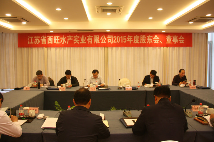 4月22日下午,江蘇省西旺水產(chǎn)實(shí)業(yè)公司2015年度股東會(huì)、董事會(huì)在墟溝召開,省沿海開發(fā)集團(tuán)總經(jīng)理丁建奇、副總經(jīng)理周金陽等股東代表、董事代表出席了會(huì)議。會(huì)議由連云港市工業(yè)投資集團(tuán)副總經(jīng)理?xiàng)顕轮鞒帧?br /> 會(huì)議聽取并批準(zhǔn)西旺公司總經(jīng)理湯建兵所作的2015年度工作報(bào)告,通過了2015年財(cái)務(wù)決算和2016年財(cái)務(wù)預(yù)算。會(huì)議還同意由公司董事會(huì)所提交的關(guān)于西旺公司股東雙方持股比例變更等提案,并對(duì)董事會(huì)董事成員進(jìn)行了調(diào)整。會(huì)上,西旺公司董事長王德志代表公司董事會(huì)與總經(jīng)理湯建兵就2016年西旺公司的經(jīng)營工作簽訂了目標(biāo)管理責(zé)任書。