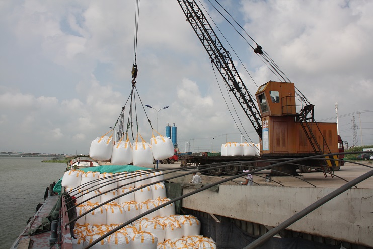 8月3日上午9點(diǎn)左右,當(dāng)筆者來到宵洋物流公司五灌河碼頭時(shí),這里已經(jīng)到處是工人們忙碌的身影,吊機(jī)揮舞巨臂、車輛川流不息、現(xiàn)場(chǎng)管理者來回奔忙指揮、作業(yè)人員揮汗如雨緊張忙碌。