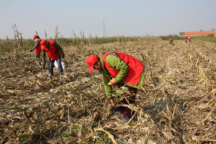 目前,位于柴門居民點(diǎn)附近的灌西實(shí)業(yè)公司農(nóng)田已進(jìn)入作物收獲期,由于所種玉米已經(jīng)完全成熟,且經(jīng)歷了一次大風(fēng)降溫天氣,所以在機(jī)械進(jìn)場(chǎng)作業(yè)前,有部分玉米已經(jīng)掉落在了地上,如不及時(shí)撿拾,將造成極大浪費(fèi)。公司團(tuán)委在得知這一消息后,立即組織近十名青年志愿者利用中午休息時(shí)間,到該公司農(nóng)田開展撿拾散落玉米志愿服務(wù)活動(dòng)?;顒?dòng)中,大家手拿編織袋,排成橫排仔細(xì)搜尋并緩慢向前推進(jìn)。由于玉米皮與秸稈顏色相近且混雜在一起很難分辨,因此大家在撿拾過(guò)程中不僅需要認(rèn)真搜尋,有時(shí)還需要彎腰翻動(dòng)秸稈,以最大限度的不遺漏任何一個(gè)散落的玉米。