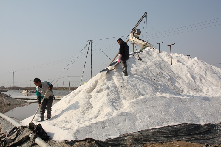 在4班現(xiàn)場(chǎng),我們看到“唐三零”操作手正在嫻熟的駕駛著機(jī)器在鹽池內(nèi)緩緩移動(dòng),以認(rèn)真的態(tài)度,飽滿的熱情進(jìn)行著扒鹽工作。在不遠(yuǎn)處的鹽廩上,雪白的原鹽正通過扒鹽篩匯集而下,大廩工也不時(shí)的用分離板進(jìn)行疏導(dǎo)工作,潔白晶瑩的原鹽蔚然成廩。為了確保原鹽質(zhì)量,生產(chǎn)服務(wù)公司化驗(yàn)室的工作人員還在扒鹽現(xiàn)場(chǎng)對(duì)鹽質(zhì)進(jìn)行跟蹤監(jiān)測(cè)。據(jù)介紹,在扒鹽設(shè)備上,今年日曬制鹽公司除了全面推廣使用五寸管道扒鹽外,又進(jìn)行了創(chuàng)新,將原來鹽、鹵分離篩上帆布引流裝置改為管道引流,這不僅有效降低了引流裝置的損壞幾率,減少了維修成本,更提高了設(shè)備的使用安全性。據(jù)了解,新河、埒南兩個(gè)制鹽分公司計(jì)劃共投入8臺(tái)扒鹽機(jī)組到此次扒鹽工作中來,目前已有七臺(tái)機(jī)組陸續(xù)出鹽,最后一臺(tái)機(jī)組也將在近日投入扒鹽工作,為原鹽銷售工作的正常有序開展提供保證。(封楊)