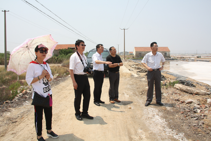 一行人先后到原民國時期公濟(jì)制鹽公司的辦公署遺址、早期產(chǎn)鹽平面灘和日曬制鹽公司的扒鹽現(xiàn)場參觀采風(fēng)。具有百年歷史的原公濟(jì)制鹽公司辦公署是灌西鹽場地區(qū)現(xiàn)存最古老的建筑物,也是整個淮鹽地區(qū)僅有的遺跡,隨著歷史的變遷,房屋雖幾經(jīng)改建,破損嚴(yán)重,但主體結(jié)構(gòu)仍然保留了下來,是重要的淮鹽文化物證。位于鈣液復(fù)曬區(qū)的早期產(chǎn)鹽平面灘,是前不久為央視攝制組拍攝淮鹽發(fā)展歷史而改造的制鹽平面灘,復(fù)制了過去的制鹽工藝及生產(chǎn)過程,在平面灘上,大家拿起收鹽刮板,挑起鹽筐,手推小鹽車,一一體驗一下過去鹽工們的勞動方式。在新河制鹽分公司十班的扒鹽現(xiàn)場,機(jī)聲隆隆,潔白鹽廩不斷壯大,這是日曬制鹽公司上半年最后一臺正在扒鹽的機(jī)組,其余的七臺扒鹽機(jī)組已經(jīng)先后完成的扒鹽任務(wù),正在進(jìn)行最后三塊格的扒鹽工作。大家一邊參觀,一邊拍照,通過古今不同時期產(chǎn)鹽方式對比,對過去鹽工們的艱辛勞動和現(xiàn)代制鹽技術(shù)的革新,生產(chǎn)力的提高都有了直接的感受,個個感觸頗深。(季興勝)