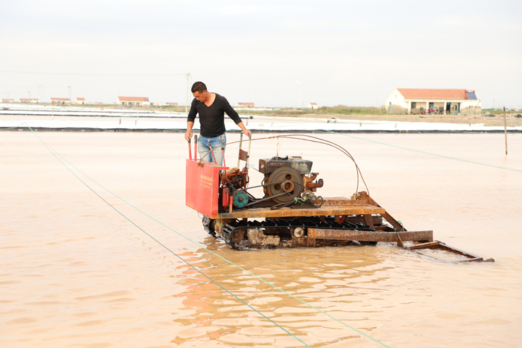 6日下午,在新河制鹽分公司的十二班,扒鹽機組正在扒鹽,在不遠處鹽池內,集鹽機械正在鹽池內緩緩移動集鹽,鹽泵運轉不停,輸鹽上廩,鹽廩上兩名大廩工正在不停筑廩。鹽池內,有的員工對破碴作業(yè)機械進行修理,有的員工在整平扒過鹽的格塊,有的員工在活碴。筆者從該班班長徐正好處了解到,該公司5號就開機扒鹽了,下半年以來,十二班已經扒鹽7000余噸。在新河制鹽分公司的十一班,班長葛高劍正帶領員工裝運大廩布,做好扒鹽的準備工作;在埒南制鹽分公司的九班,機聲隆隆,一名員正開著活碴機械在鹽池內作業(yè),不遠處有幾名員工正用土工布叉格埝,對灘場進行維修亮化;八班有一臺挖掘機正在鹽廩旁給裝鹽車輛上鹽……,日曬制鹽公司鹽灘上到處都活躍著職工們忙碌的身影。