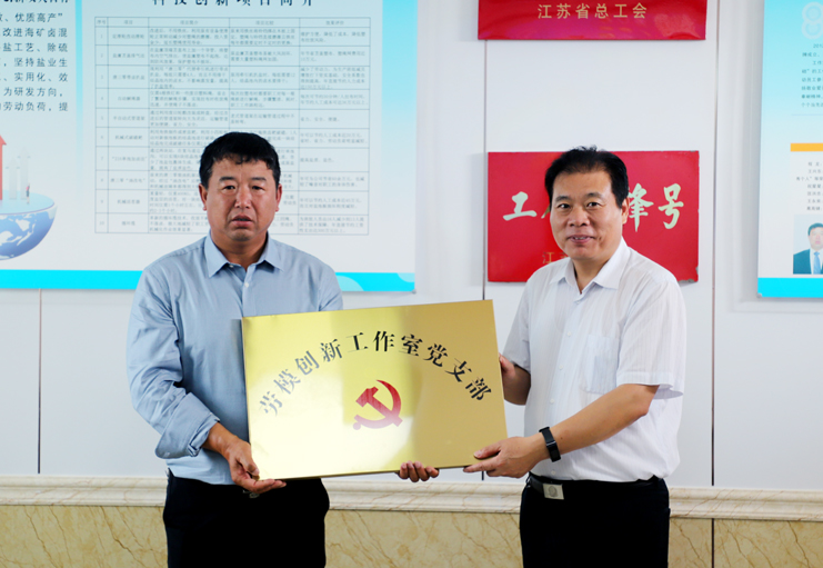 在日曬制鹽公司新河分公司的安樹林勞模創(chuàng)新工作室現(xiàn)場(chǎng),丁書記一行觀看了技術(shù)創(chuàng)新成果展示專題片,還為工作室的“勞模創(chuàng)新工作室黨支部”進(jìn)行了授牌。